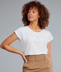 The Molly round neck work blouse, featuring the same textured, drapey fabric as its sister style Grace. Molly's gentle neckline, inverted pleat, scooped neckline & relaxed fit give graceful panache & wide appeal..